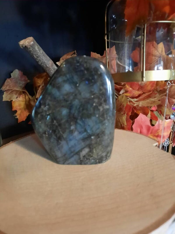 Labradoriet is een sterk beschermende en spirituele steen. Het beschermt het eigen energieveld (aura) tegen negatieve invloeden uit de omgeving en mensen die energie bij je wegnemen. De steen vermindert angst en geeft kracht, (zelf)vertrouwen en doorzettingsvermogen. Het versterkt de intuïtie en mediamieke gaven.