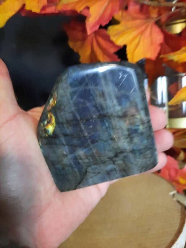 Labradoriet is een sterk beschermende en spirituele steen. Het beschermt het eigen energieveld (aura) tegen negatieve invloeden uit de omgeving en mensen die energie bij je wegnemen. De steen vermindert angst en geeft kracht, (zelf)vertrouwen en doorzettingsvermogen. Het versterkt de intuïtie en mediamieke gaven.