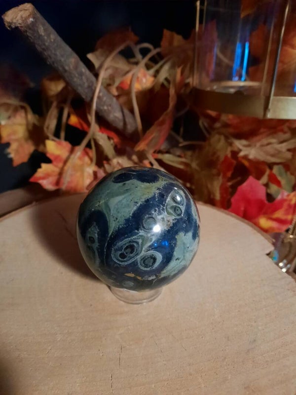 Kambaba jaspis is een grijsgroene jaspis variant. Jaspis werkt aardend en beschermend. De steen helpt je je doelen waarmaken en ideeën omzetten in actie. Het maakt strijdlustig, daadkrachtig, volhardend, vastberaden en helpt je ergens voor 100% voor gaan.